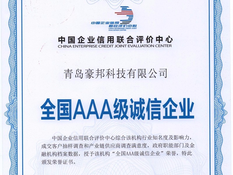 豪邦科技榮獲全國AAA級誠信企業(yè)